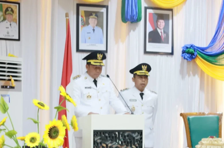 Mengawali pidatonya, Bupati Barito Kuala Dr. H. Bahrul Ilmi, S.H., M.H. menyampaikan terima kasih kepada seluruh masyarakat Kabupaten Barito Kuala yang telah memberikan kepercayaan kepadanya dan Herman Susilo sebagai Bupati dan Wakil Bupati Barito Kuala 2025-2030.