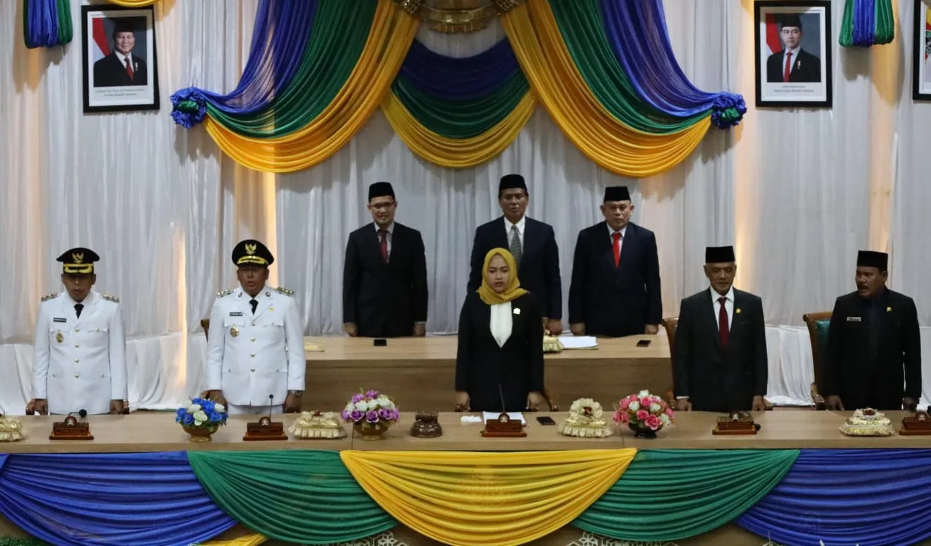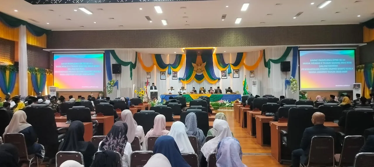 Marabahan, Kontenborneo.com – Pidato Pertama Bupati dan Wakil Bupati terpilih Kabupaten Barito Kuala Dr. H. Bahrul Ilmi dan Herman Susilo berlangsung di Dalam Rapat Paripurna DPRD Ke-13 Masa Sidang II tahun 2024-2025 di gedung Dewan Perwakilan Rakyat Daerah (DPRD) Kabupaten Barito Kuala, Senin (03/03/25).