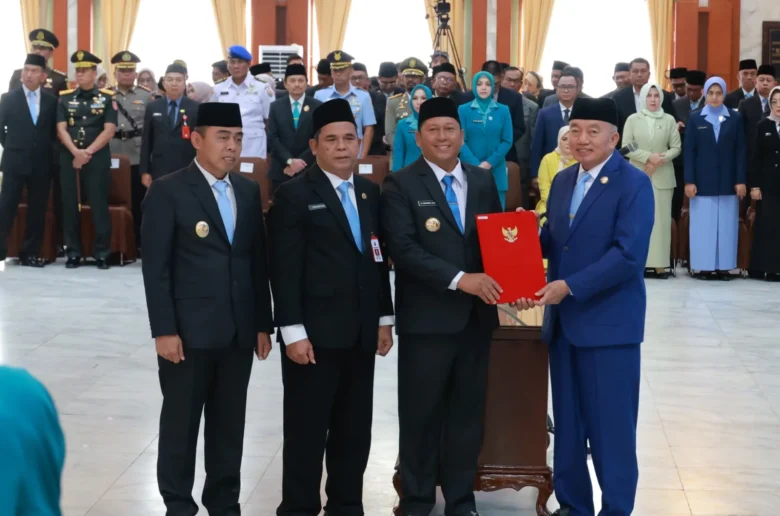 Banjarmasin, kontenborneo.com – Bupati Barito Kuala Dr. H. Bahrul Ilmi dan isteri Ny Hj. Noorhayati Bahrul Ilmi hadir di Gedung Mahligai Pancasila Banjarmasin, Rabu (05/03) dalam rangka menerima Penyerahan Memori Jabatan dan Keputusan Menteri Dalam Negeri (Mendagri) tentang Pengesahan Pengangkatan Bupati dan Wakil Bupati Serta Walikota dan Wakil Walikota se-Kalimantan Selatan Periode 2025-2030 oleh Gubernur Kalimantan Selatan H. Muhidin.