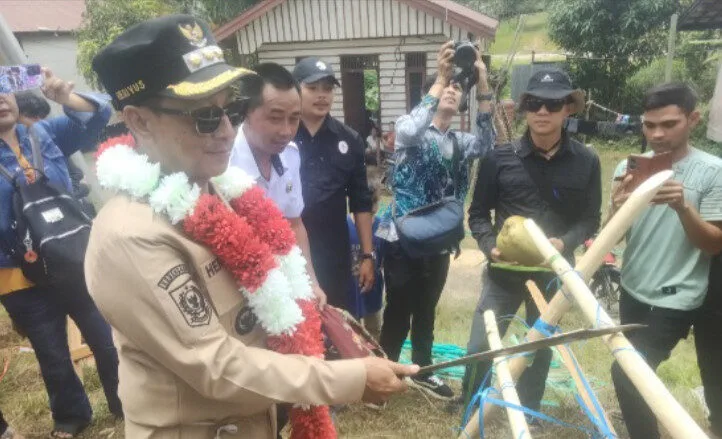 PURUK CAHU, kontenborneo.com – Warga Desa Hingan Tokung, Kecamatan Barito Tuhup Raya, menyambut gembira kedatangan Bupati Murung Raya, Heriyus, pada Rabu (10/9/2025). Kedatangan Bupati diawali dengan prosesi adat Dayak, sebagai wujud penghormatan dari masyarakat setempat.